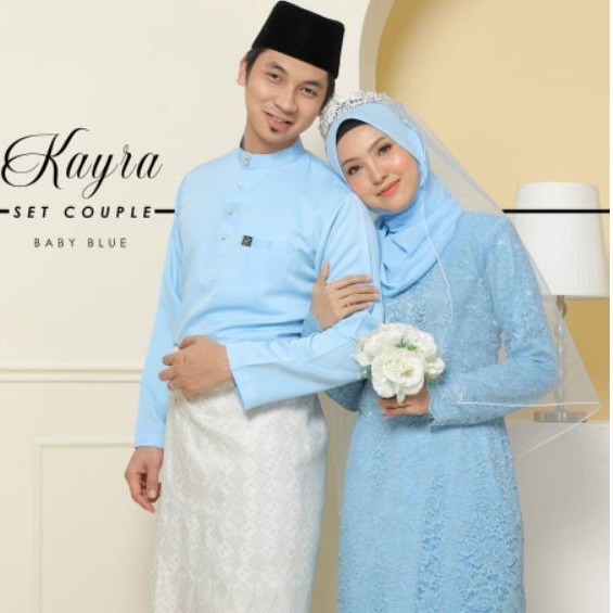 Baju layang pengantin biru muda dan kebaya labuh sedondon via www.kahwinmall.com.